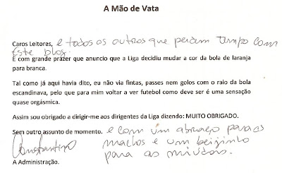 6. Um gajo quando nasce para ser mexilhão nunca chega a lagosta e o resto é conversa.... a ver o jogo na Sporttveetle, passe do Ramires, Tacuara domina, estica a culatra atrás e .... ligação a baixo.... exijo um pedido de desculpas!!! E daqueles escritos só a computador que eu não percebo a caligrafia do oliveirinha.